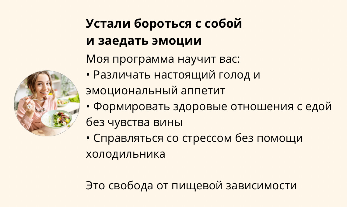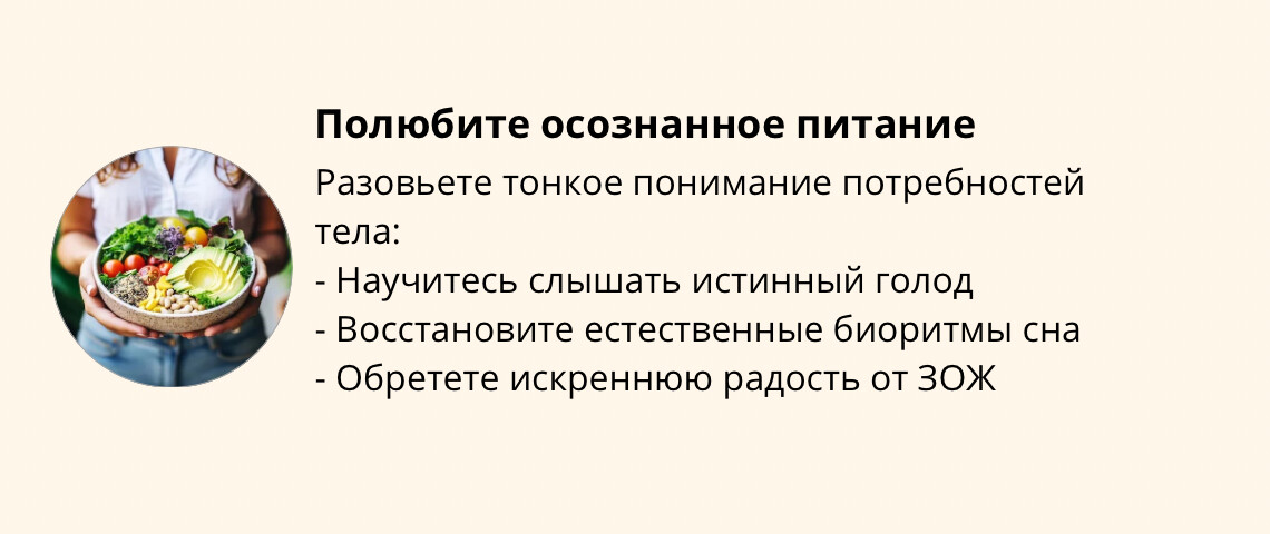 ✅ Перестанете видеть в еде врага и научитесь управлять аппетитом, а не запретами.