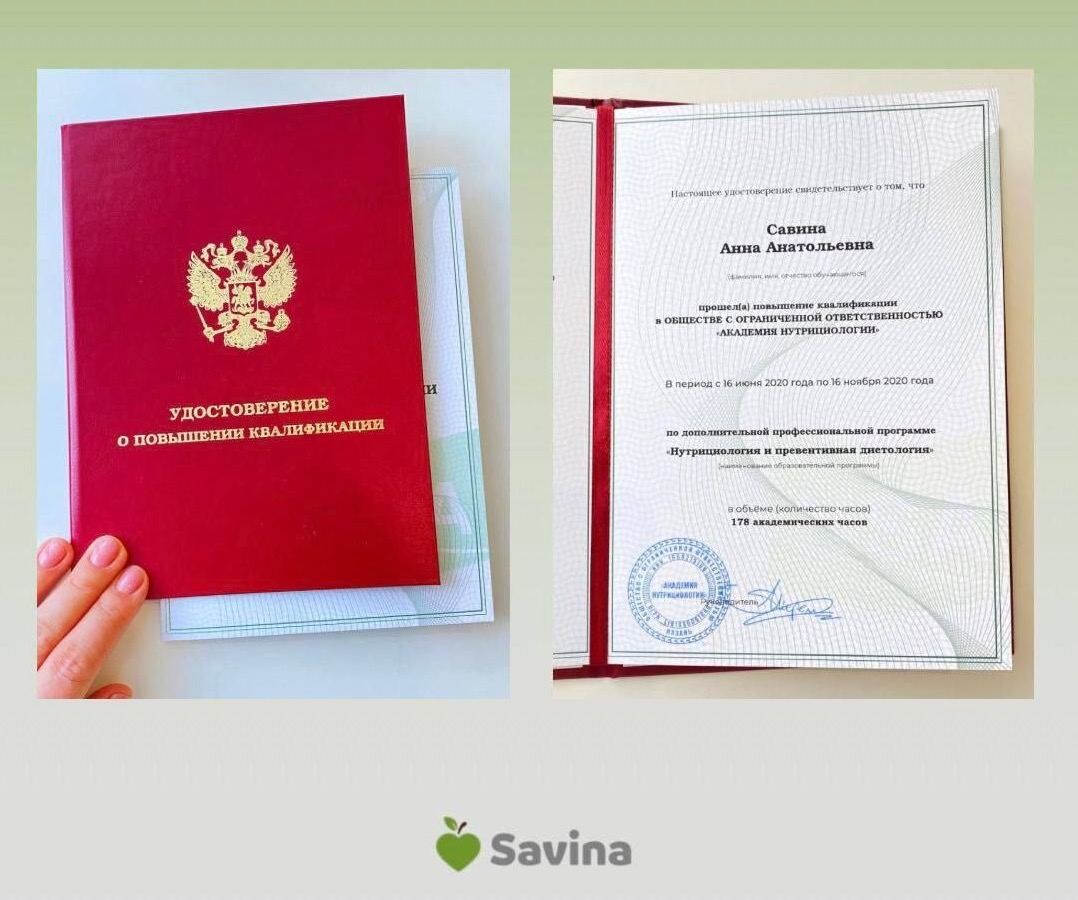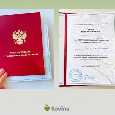- Дипломированный специалист по нутрициологии и превентивной диетологии