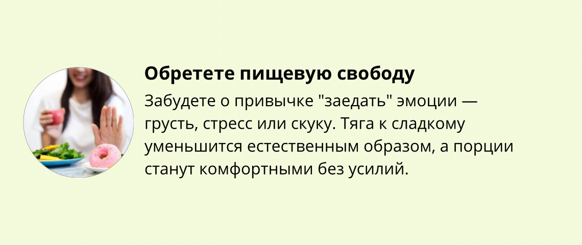 ✅ Узнаете, как гасить острые приступы «хочу сорваться» — без чувства вины.